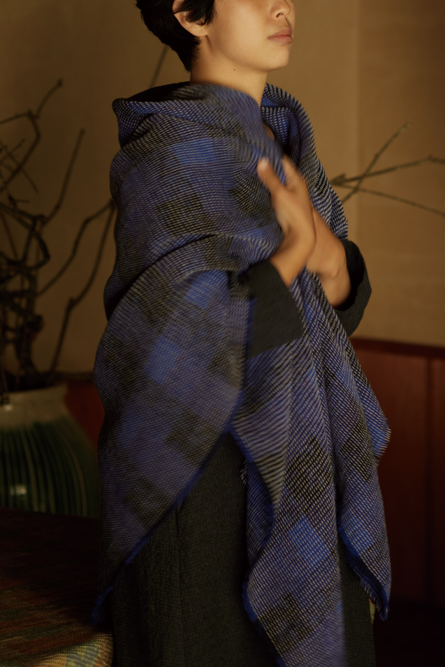 重い上着に手が伸びなくなった今日この頃は、むしろ一枚の布の自由さに惹かれる。大判の布で上半身から腰まですっぽり包んでもいいし、中判の布をストールのように首周りにふわりと巻いてもいい。金具もボタンもないからこそ、糸の味がダイレクトに肌と心に沁みてくる。「着る」ではなく「まとう」喜びが、心を満たす。