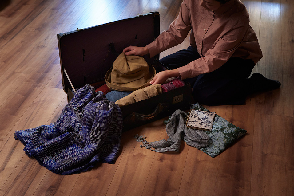 暮らすように旅したいから、私のパッキングリストには、いつもお気に入りの布がある。旅先のホテルや機内で広げれば、ちょっとよそよそしかった空間も、たちまち安らげる場所に変わるから不思議。ショールにも膝掛けにも、外出の上着がわりにも、トランクの荷物の目隠しにもなる万能な旅の道連れ。私と一緒に、どこへでも。