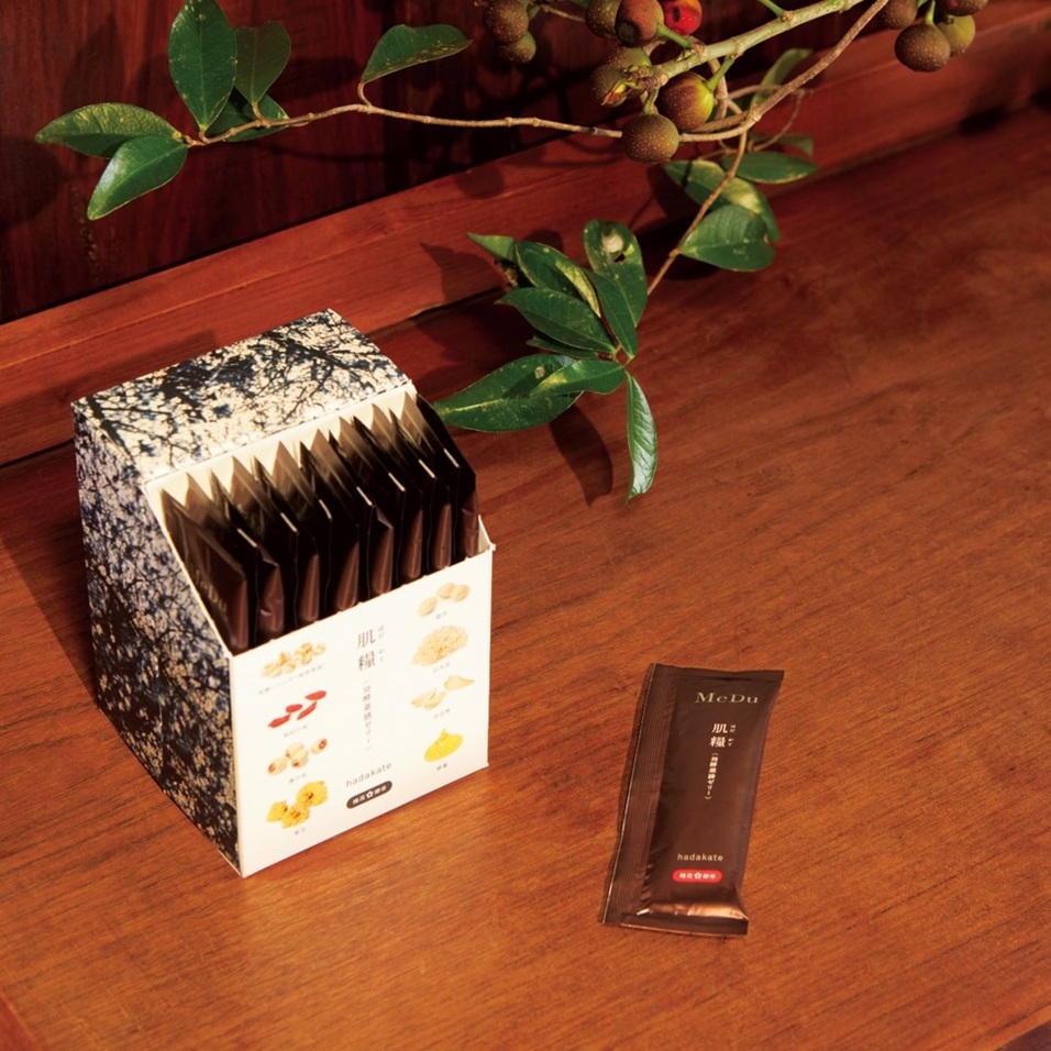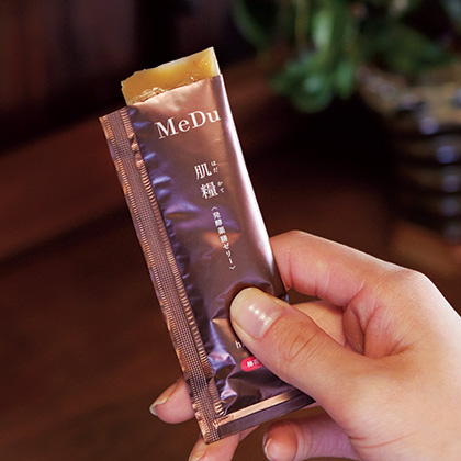 「晩夕の蜜、早朝の水」とは、夜に蜂蜜を食べ、起き抜けに水を飲むとよいという教え。そこに発酵の恵みと薬膳の知恵を加えてアップデートし、現代にふさわしい夜の体内美容をご提案しているのが、MeDuの発酵薬膳ゼリー〈肌糧〉です。