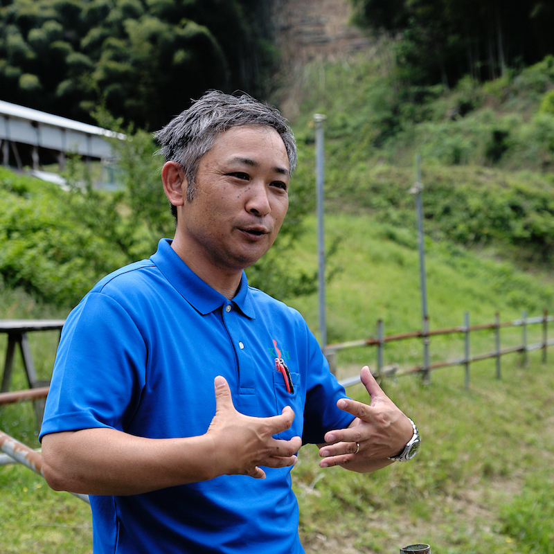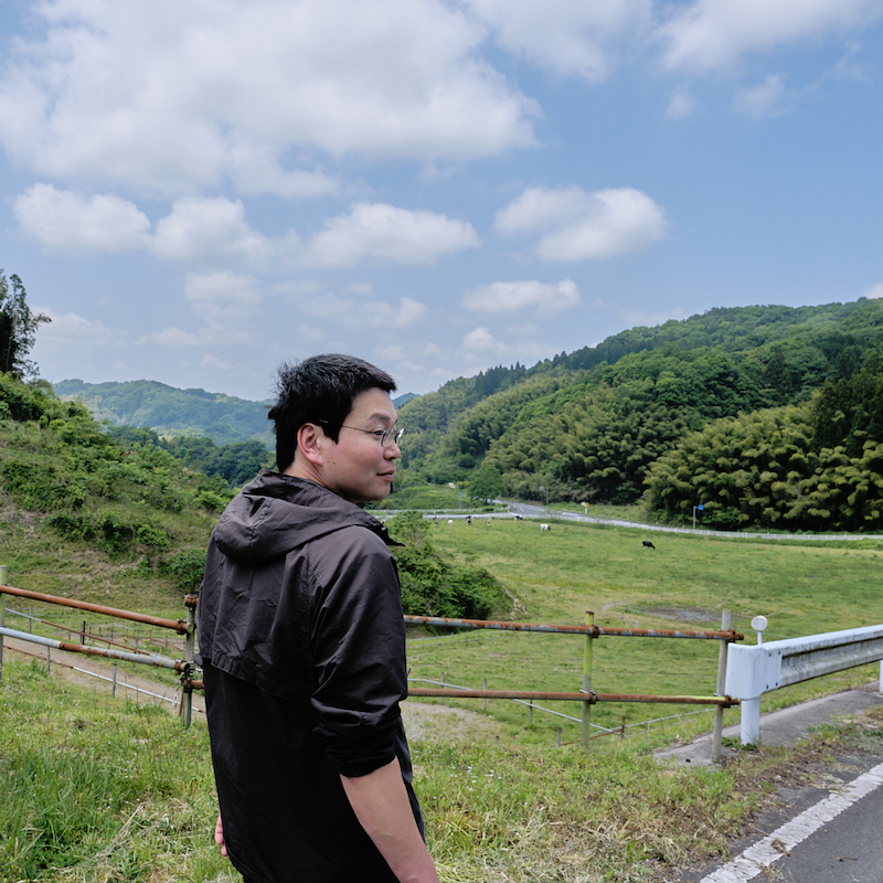 「昔はここら一面、竹に覆われていたのを切り開いて、牛を放って、10年経ってようやくこの景色になりました。牛が筍を食べるので、竹林が自然と後退していくし、牛は列をなして歩く習性があるから、自然と土が踏み固められて、けもの道ができるんです。だからこれは、“牛がつくった風景”です」