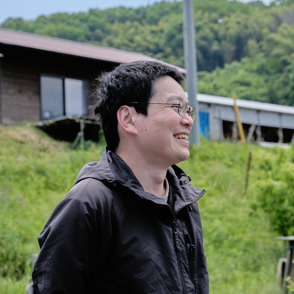 尾原ダムを見晴らせる山に広がる、この牧場。かつてはダムの残土処理場だったこの土地を牧場にしようと立ち上がったのが木次乳業さんで、その牧場主の公募に手を挙げたのが、当時まだ20代だった新規就農者の大石亘太さんでした