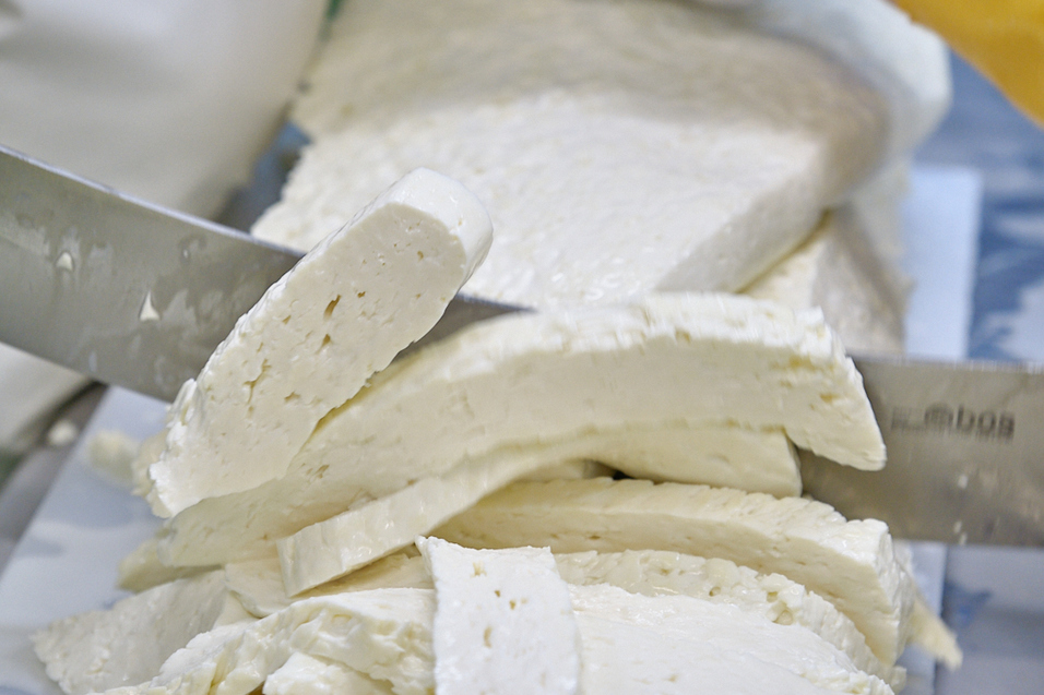 待ったなしの温度変化に追いかけられながらの、数人がかりの作業。誰もが無言のうちに、一糸乱れぬ連携で手早く仕事を進め、白く丸いチーズの塊が次々とできてゆきます。これらの塊は、1日塩水に漬けたのち、丸1日かけて乾燥。そして桜のチップで全体をスモークしてから、乾燥防止のワックス(蝋)をかけ、約1ヶ月熟成させるのです。